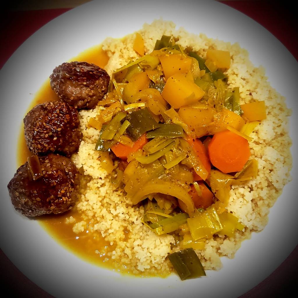 Servir et déguster (les boulettes étaient dé-li-cieuses !!!!).