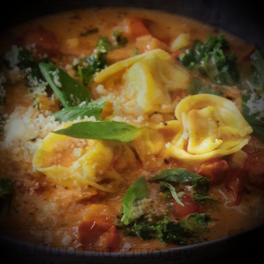 Ajouter dans la cocotte les ravioles, les tomates cerises, cuire 1min encore et servir dans des grands bols avec du basilic ciselé et saupoudrer de parmesan.
