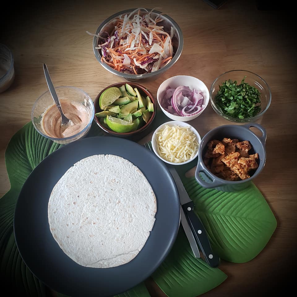 Faire réchauffer les tortillas au four dans de l’alu.