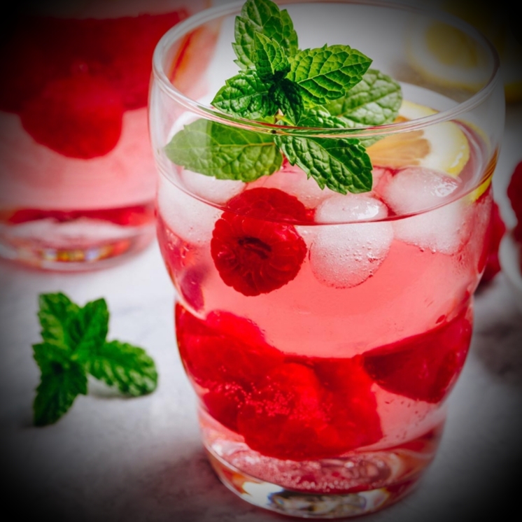 Placer les framboises, 3 tranches de citron et 2 brins de menthe dans un bocal fermant hermétiquement.