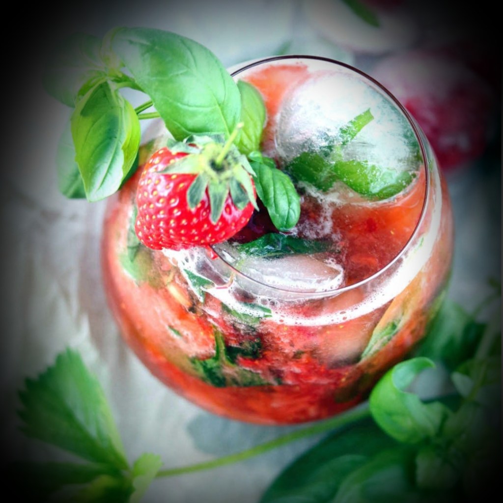 Peu avant de servir, incorporez le vin pétillant bien frais, garnir de fruits rouges et de feuille de basilic et ajoutez quelques glaçons.