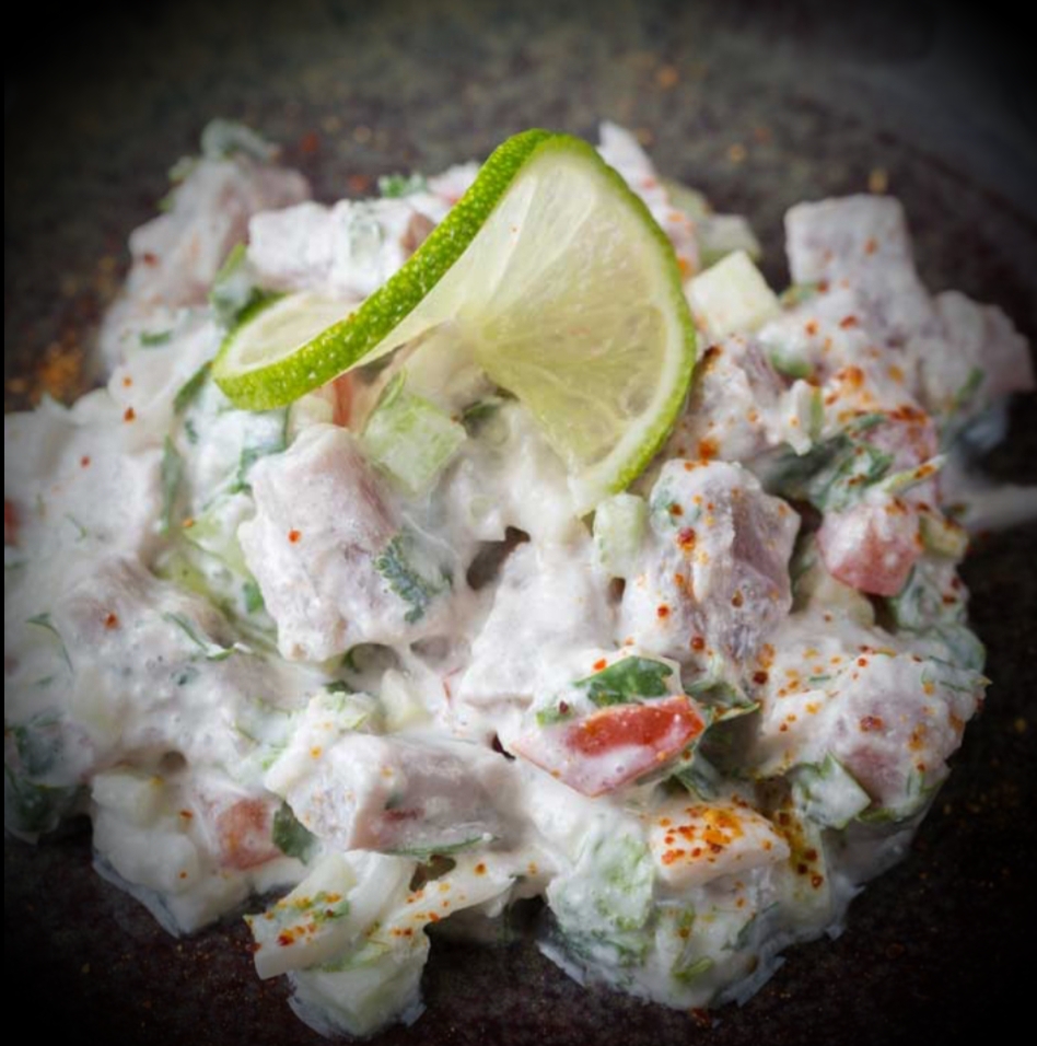 Egoutter le poisson. Le déposer dans un saladier. Ajouter oignons, piment, ciboulette. Arroser de lait de coco.