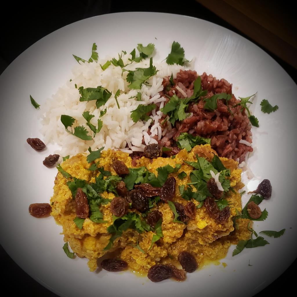 Préparer un riz basmati ou un riz complet rouge (ou les 2 comme sur la photo).