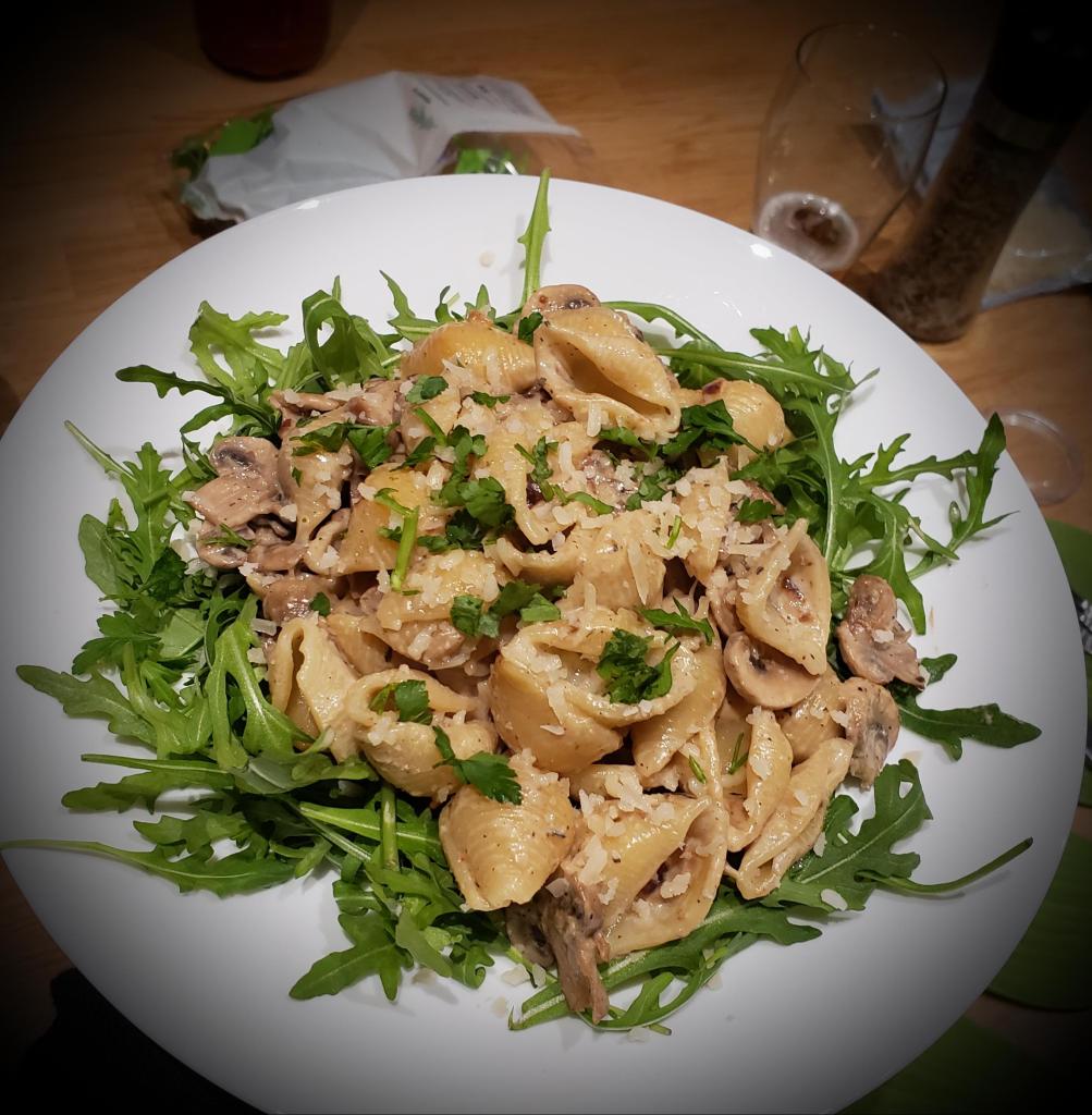Des pâtes dans une sauce onctueuse aux saveurs de sous-bois