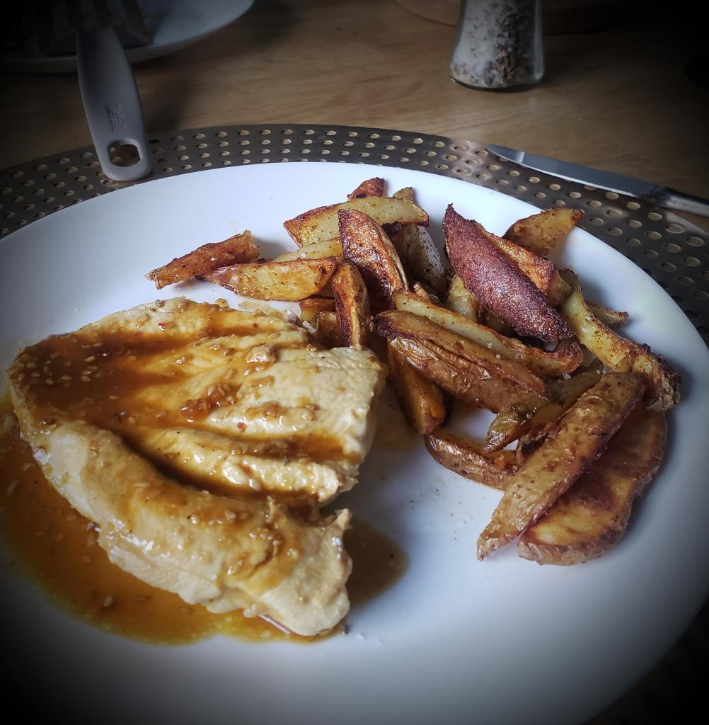 Les couper en 2, puis en quartiers fins. Déposer sur une plaque allant au four, arroser d’huile d’olive, de sel, de poivre, de paprika, de 2CS d’ail en poudre et de piment d’Espelette. Enfourner à 220° pendant 40min jusqu’à ce qu’elles soient bien dorées et croustillantes.