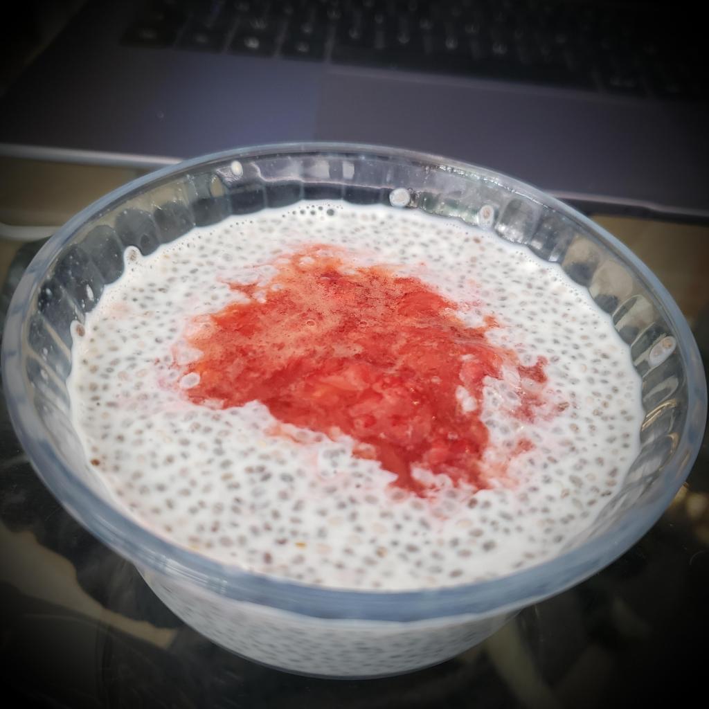 Dans un ramequin, mélangez les graines de chia et le lait d’amande.