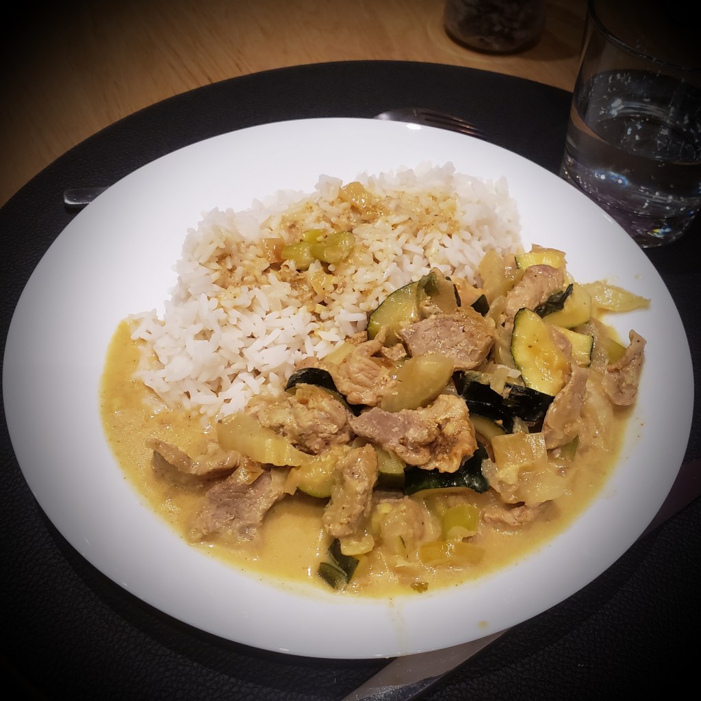 En fin de cuisson, rectifier l’assaisonnement, ajouter un peu de basilic chinois ou de coriandre, et servir accompagné de riz blanc.