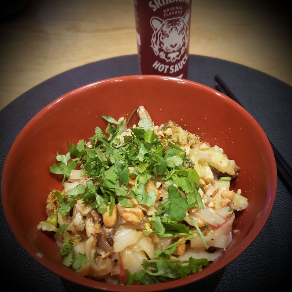 Servir dans des petits bols. Parsemer de cacahuètes grillées concassées, de coriandre ciselée. Déguster avec de la sauce Sriracha.
