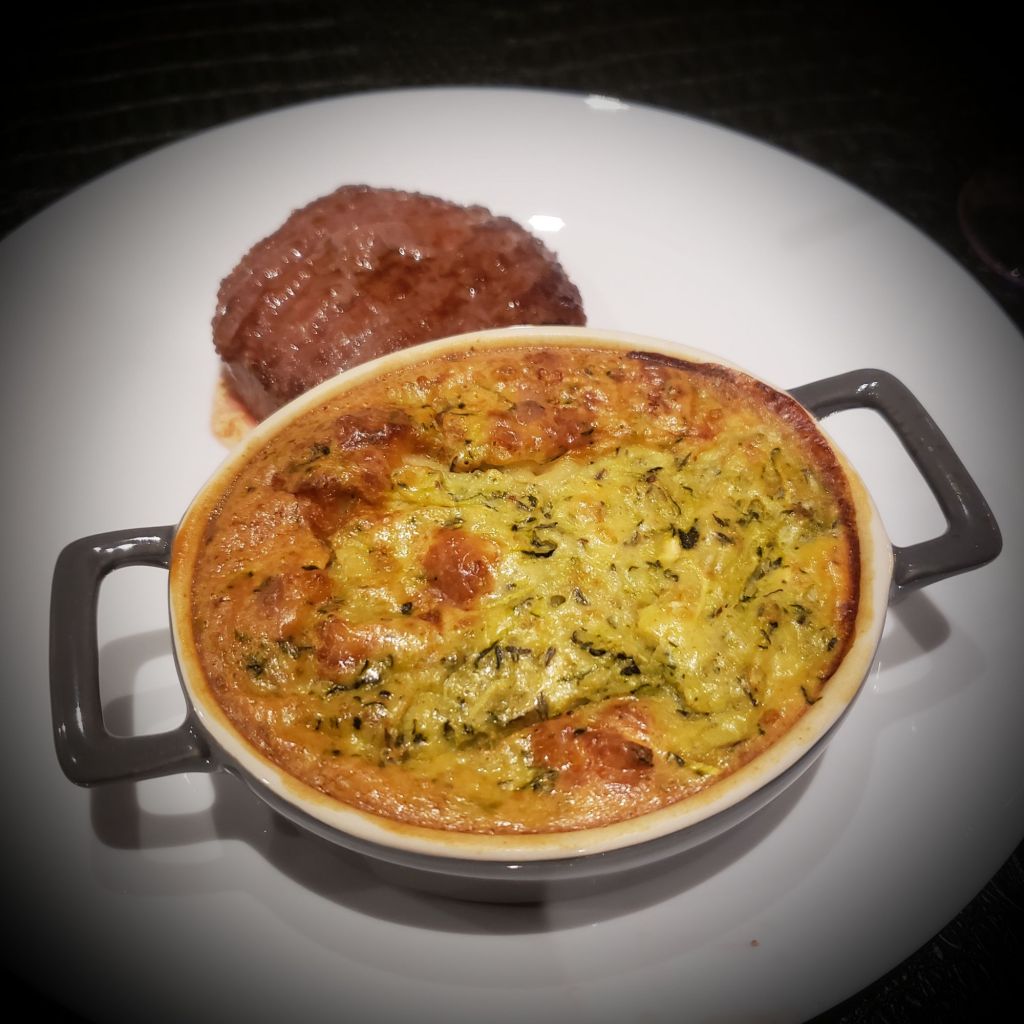 Râper les courgettes et les faire revenir avec un filet d’huile et l’ail émincé et le thym.