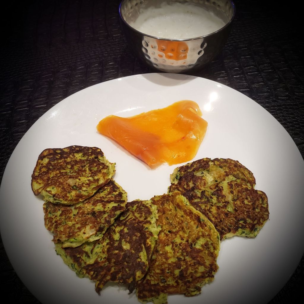 Dans un petit saladier, râper les courgettes, l’oignon et l’ail. Verser la farine et mélanger. Ajouter les 2 jaunes d’oeufs et mélanger. Saler, poivrer et pimenter.
