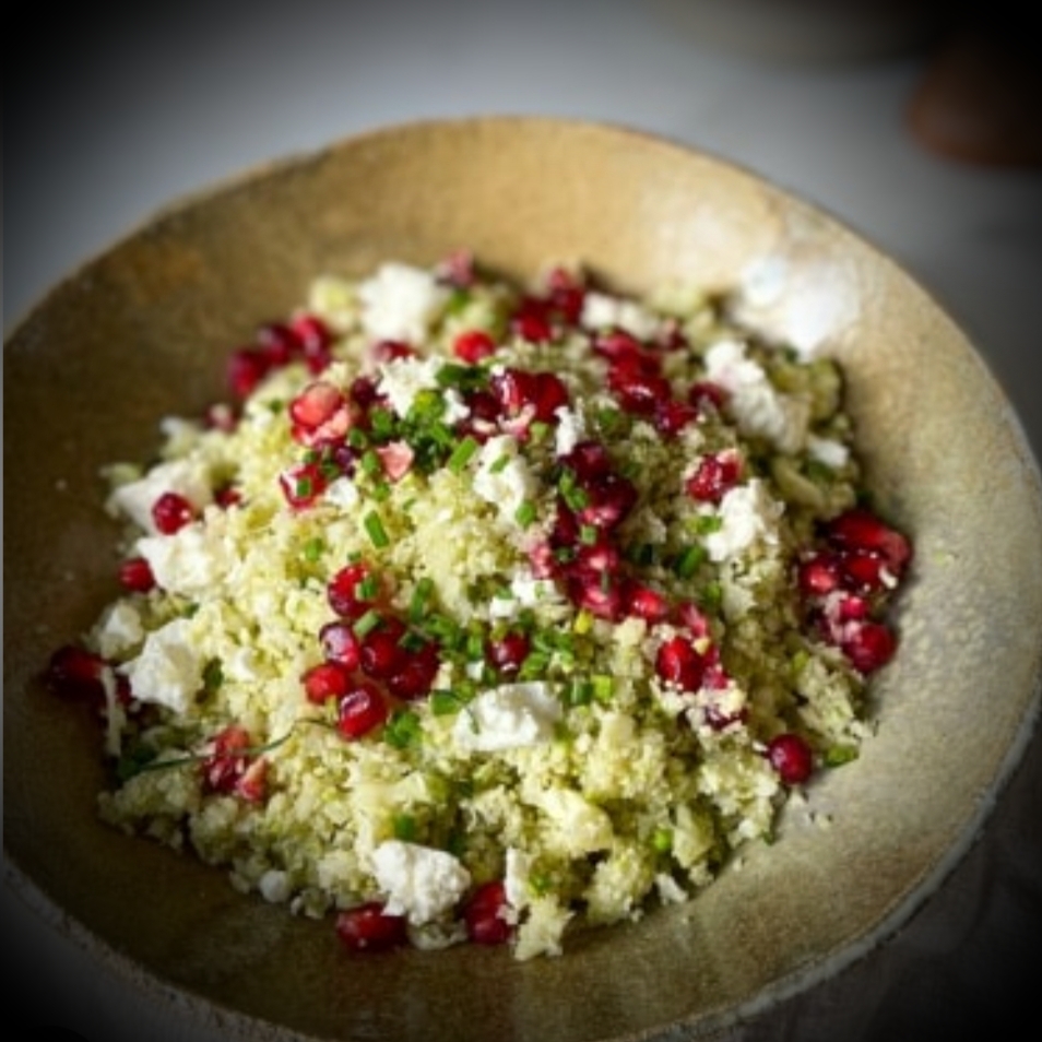 Détailler le chou-fleur en fleurettes. Les disposer dans un mixeur et mixer le tout pour en faire une semoule.