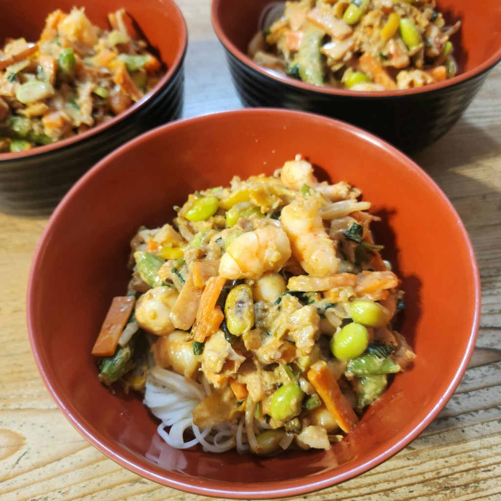Faites bouillir de l’eau et faire cuire les nouilles de riz 3 min.